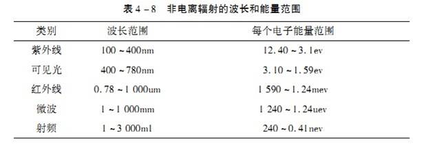 1、非电离辐射的波长和能量范围(表4-8)。