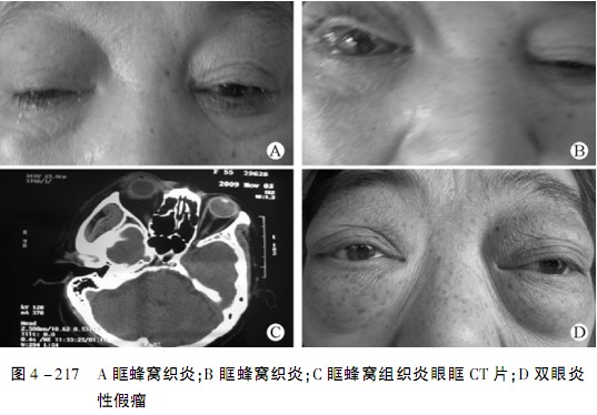 (1)临床表现类似于眶蜂窝织炎,但此眶蜂窝织炎更急迫更明显。